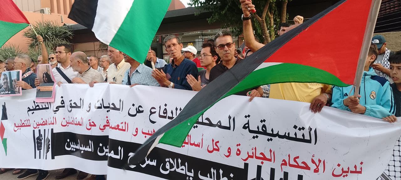 في إطار الذكرى السابعة لتشميع بيت المهندس لطفي حساني، نظمت اللجنة المحلية للدفاع عن أصحاب البيوت المشمعة بالشرق وقفة احتجاجية رمزية أمام بيته المشمع بحي الأندلس بوجدة مساء اليوم الأربعاء 10 دجنبر 2024، والذي يصادف اليوم العالمي لحقوق الإنسان. وفي الوقفة التي عرفت إنزالا أمنيا مكثفا، ردّد المحتجون شعارات رافضة ومنددة باستمرار هذا القرار التعسفي […]