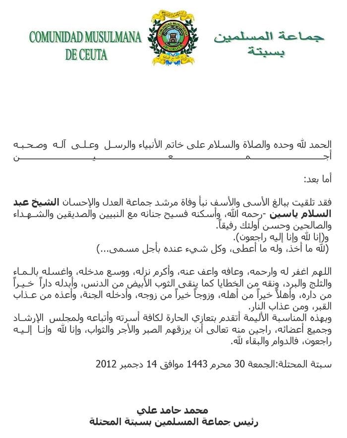 شهد المقر المركزي لجماعة العدل والإحسان بمدينة سلا، يوم الثلاثاء 1 يناير 2013، استقبال الأستاذ منير شفيق، بصفته الشخصية مفكرا إسلاميا بارزا، وبصفته منسقا عاما للمؤتمر القومي الإسلامي، معزيا في وفاة الإمام المرشد.