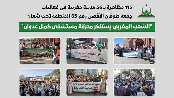 يواصل المغاربة اليوم الجمعة 07 مارس 2023، 16 رمضان 1444، احتجاجاتهم في مختلف المدن تنديدا بالاقتحامات الصهيونية للمسجد الأقصى والاعتداء الأرعن على المرابطين داخله بالسحل والتقييد والتنكيل، في صورة لا تكشف إلا حقيقة هذا الكيان العنصري الغاصب، الذي بنى وجوده الوهمي على جثث أبناء شعبنا الفلسطيني ودماءهم. وجدّد آلاف المواطنين المغاربة بعد صلاة الجمعة، اليوم، […]