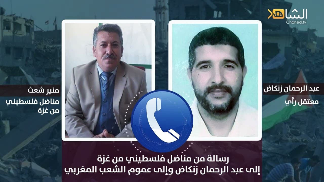 أرسل المناضل الفلسطيني منير شعث رسالة صوتية إلى الشعب المغربي بشكل عام وإلى معتقل الرأي عبد الرحمن زنكاض بشكل خاص، استهلها بقوله: “أيها الشعب المغربي العظيم؛ إننا نراقب عن بعد وقفاتكم البطولية مع غزة”.