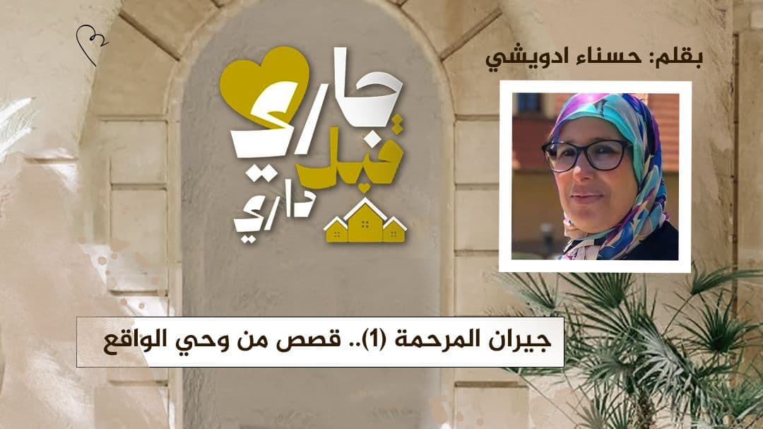 – الجيران في كل وقت وفي كل زمان، أول المغيثين، وأقرب القريبين، ففي وقت الأزمات خاصة ووقت الشدة، أول من تطرقين بابه جار يقدم لك يد العون، هو خير نرجو أن لا ينقطع، لأنه سبب للتراحم والتواصل ونشر الخير بين الناس.