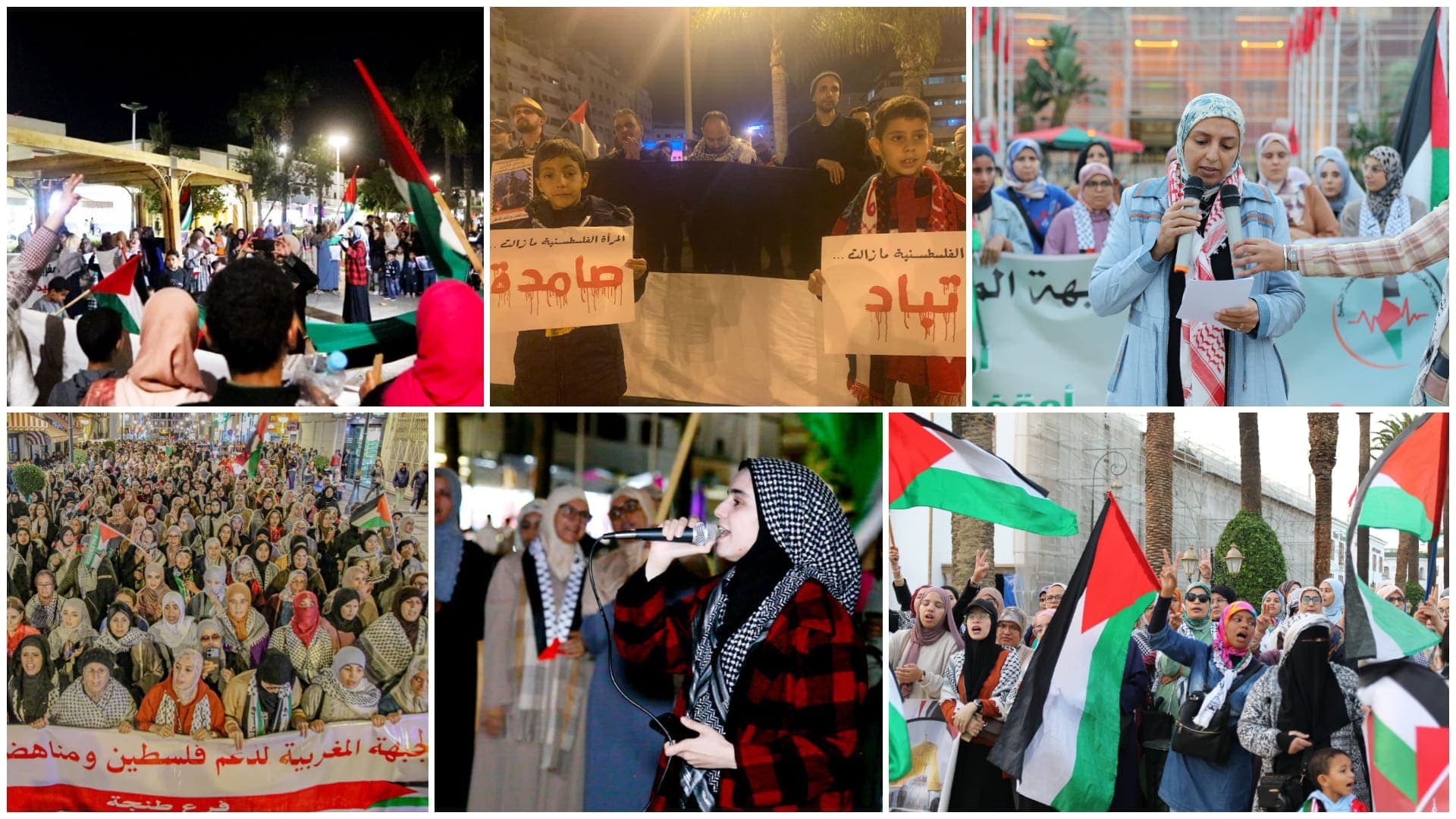 وبمدينة طنجة تحولت وقفة للنساء الطنجاويات بساحة الأمم وبجانبهن رجال المدينة الصامدة إلى مسيرة شعبية ضخمة، جالت شوارع البوغاز بدعوة من الجبهة، تضامنا مع النساء الفلسطينيات واللبنانيات خاصة والشعبين الفلسطيني واللبناني عامة ودعما للمقاومة الباسلة ضد الكيان المحتل، وشجبا للإبادة الجماعية التي تقودها العصابات الصهيونية ضد النساء والأطفال بل في حق كل الشعبين الفلسطيني واللبناني، حيث رفعت حناجر النساء والرجال معا شعارات متضامنة مع الضحايا ومنددة بالإبادة والصمت الدولي.