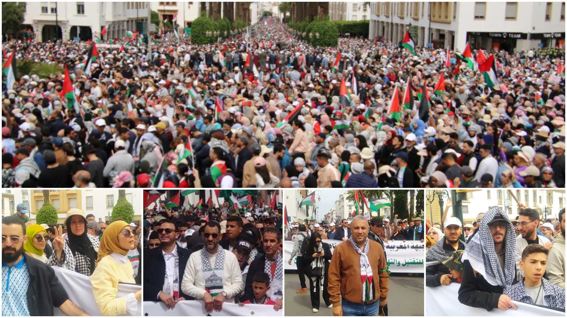 رفرفت الأعلام الفلسطينية في سماء العاصمة المغربية حيث توشحت الأعناق كوفيات فلسطينية، وصدحت الحناجر برسائل إلى الأخ وإلى الصديق وإلى القريب وإلى العدو، كل بما يليق به في مشاهد تعكس تجذر القضية الفلسطينية ورموزها ومقاومتها في الوجدان الشعبي المغربي.
