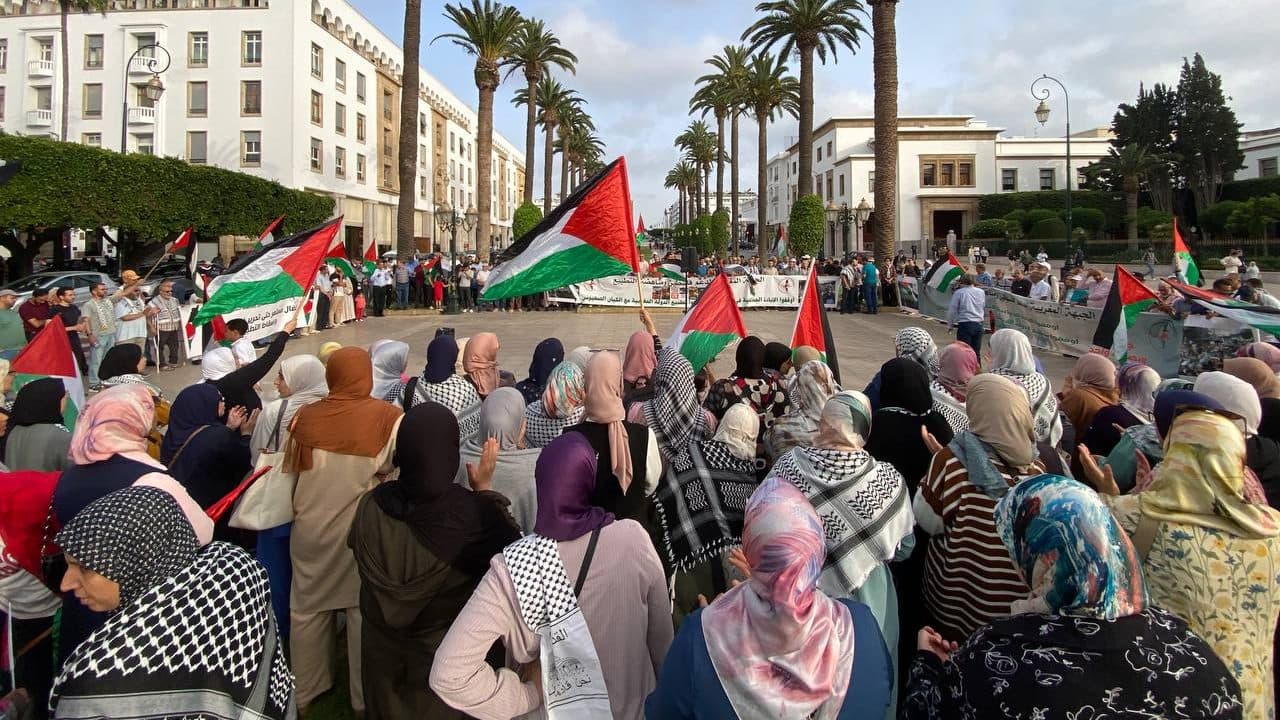 كما رفع المحتجون شعارات تدين المجازر التي يرتكبها الكيان الصهيوني في غزة، وتندد بما وصفوه بـ”الخذلان الرسمي المغربي” من خلال مواصلة التطبيع، رغم ما يبث يوميا من صور مرعبة لدماء الأطفال وحرائق الخيام فوق رؤوس المدنيين.
