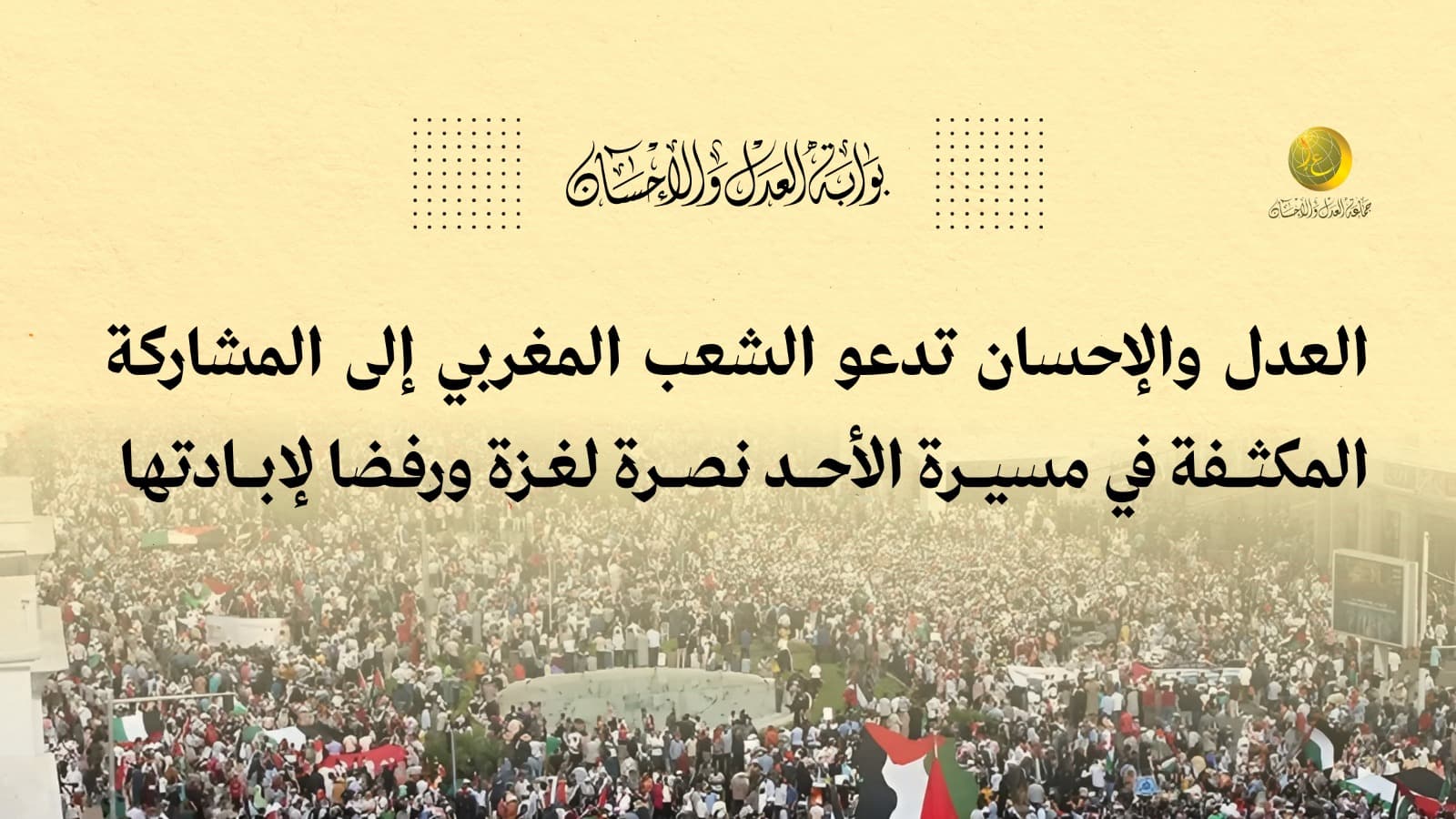 العدل والإحسان تدعو إلى المشاركة الواسعة في احتجاجات اليوم العالمي للتضامن مع الشعب الفلسطيني