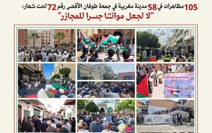 من الرباط إلى مراكش فطنجة ووجدة وغيرها.. احتجاجات تؤكد إسناد الشعب المغربي للحق الفلسطيني